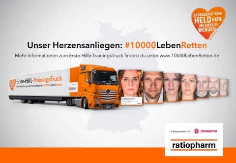 Der Truck ist das Herzstück der Initiative #10000LebenRetten, die es sich zum Ziel gemacht hat, so viele Menschen wie möglich auf den Notfall vorzubereiten und die niedrige Ersthelferquote in Deutschland langfristig zu steigern. Weitere Informationen zur Tour und der Initiative finden Sie unter http://www.10000LebenRetten.de und auf Facebook und Instagram („@10000LebenRetten“).